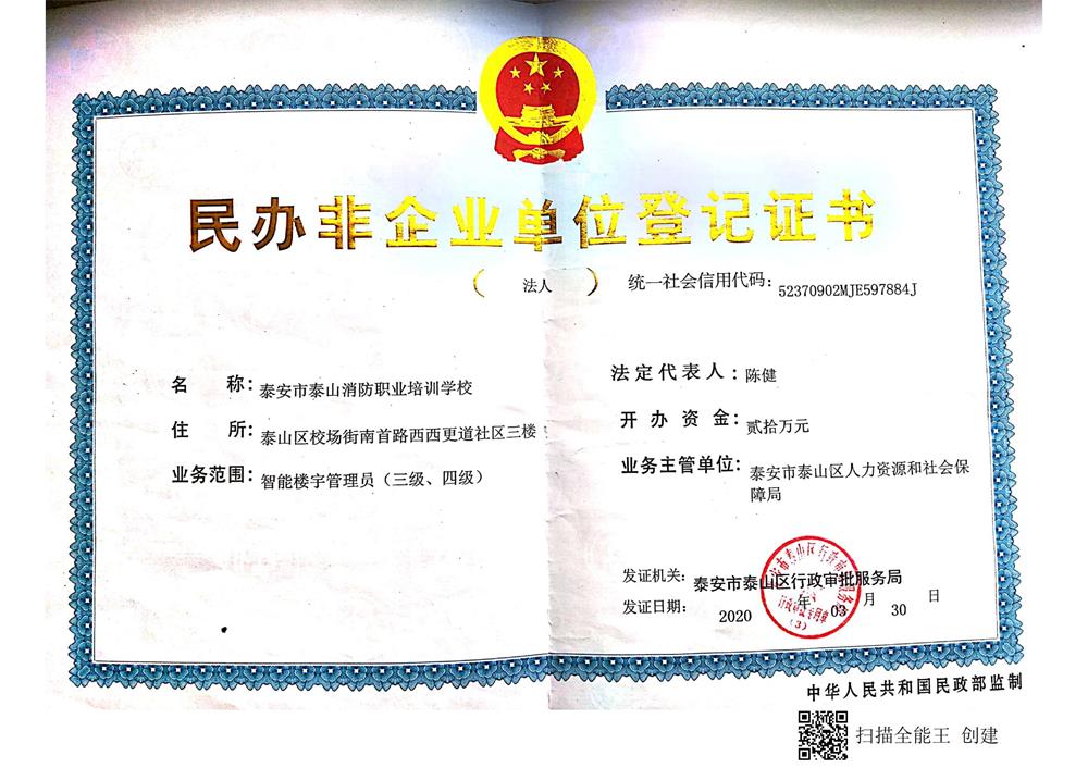 是經(jīng)泰安市人社局批準(zhǔn)、民政局注冊(cè)登記的專(zhuān)門(mén)開(kāi)展智能樓宇管理、建工類(lèi)、消防類(lèi)等培訓(xùn)的學(xué)校。辦學(xué)手續(xù)齊全、師資力量雄厚、硬件設(shè)施規(guī)范。